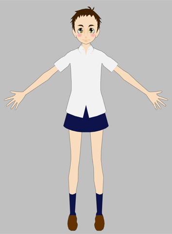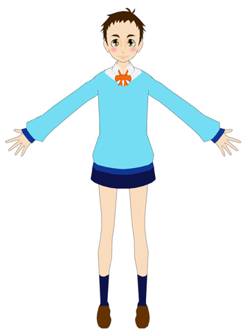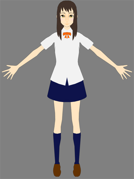 制服は「夏用」「ブレザー」「セーター」の3パターンを用意する予定。の、今回は「夏用」。先に予定しているキャラ全員のモデリングだけザクッとやって、苦手なテク製作は慎重に・・・後回し。